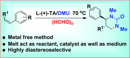 Novel one-pot method for the stereoselective synthesis of tetrahydro-pyrimidinones in low melting mixture.
