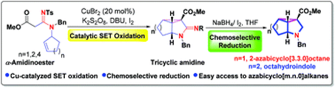 Reversal of polarity by catalytic SET oxidation: synthesis of azabicyclo[m.n.0]alkanes via chemoselective reduction of amidines.