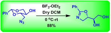 A Lewis acid initiated intramolecular cyclization of benzylidene acetal with azide: Novel synthesis of oxazolines and oxazines