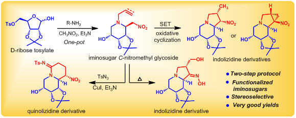 Iminosugar C-Nitromethyl Glycosides and Divergent Synthesis of Bicyclic Iminosugars