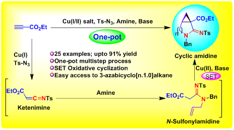 Novel One-pot Synthesis of Cyclopropane-fused Cyclic Amidines: An Oxidative Carbanion Cyclization
